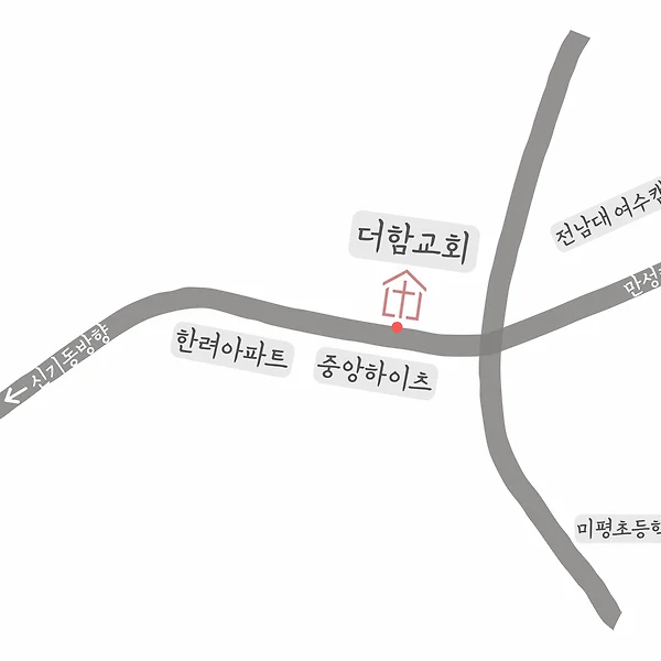 터 위 으뜸 예수 더함교회입니다 하나님께서 복의 통로로 더함교회를 세우셨습니다 설립일 2025.3.2 주일모임 오전 11시 주일학교 오전 11시 (성경이야기+놀이교실) 아침묵상 성서유니온 ‘매일성경‘으로 말씀을 묵상합니다 와먹스쿨 매주 토요일 아침 10:00-12:00 (요21:12) 사진 영상 디브레 헤페츠(기쁨의 말씀) 주일 1시, 함께 말씀을 묵상하고 나눕니다 사단법인 센트 더함교회는 작은교회/목회자/선교단체를 지원하고 연결하는 센트에 가입했습니다 헌금이 쓰인 곳 매 홀수 달 두번째 주일에 헌금의 입출을 알립니다 더함교회의 신앙고백 더함교회는 역사적인 기독교 신앙에 따라 다음과 같이 믿음을 고백합니다 ♪ 주제가 복이되라 더함교회 ♪ 주제가(클래식) 아브라함 부르시며 교회 위치 전남 여수시 둔덕동 434-7 (주차-교회 뒤 공영주차장) 정한헌금 1000-3777-4125 신한은행(더함교회) 주보 우리들의 말씀묵상 서형섭 박사 (주해묵상) for 21 years 와와 에녹 쏭 스테판 니마짜 플로라